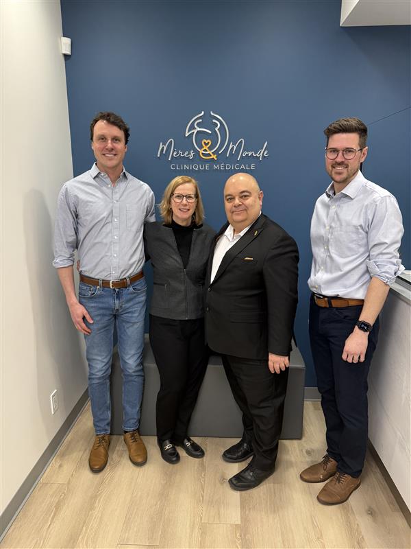 C’est dans cet esprit que le président de la FMOQ a visité la clinique médicale Mères & Monde – en compagnie de la présidente de l’AMOLL et deuxième vice-présidente de la FMOQ, la Dre Lyne Couture – un GMF de Prévost, dans les Laurentides. Ce milieu de soins, inauguré à la fin de 2024, est issu de la vision de médecins de famille qui ont voulu repenser l’organisation des soins de première ligne pour mieux servir la population tout en offrant un milieu de pratique intéressant et agréable aux médecins de famille et à leur équipe de soins.