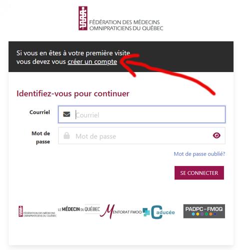 Si vous n'avez pas créé encore votre compte, rendez-vous sur mon.fmoq.org et cliquer sur : créer un compte puis suivre les étapes.