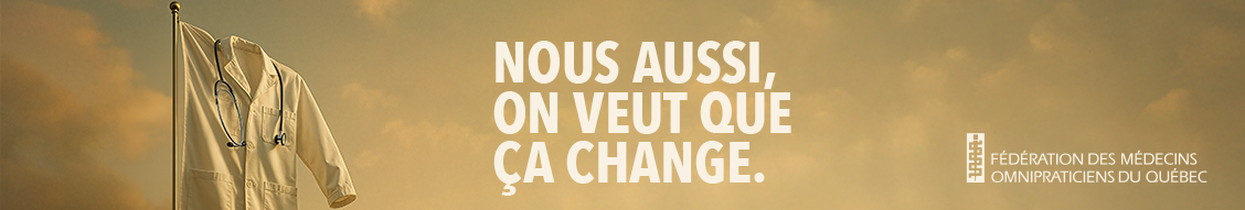 Le 2 octobre dernier, la FMOQ lançait une campagne grand public — journaux, radio, numérique et médias sociaux — visant à faire savoir que les médecins de famille souhaitent, eux aussi, voir les choses changer. Elle rappelle également que le changement ne peut se faire sans le concours des médecins de famille, et encore moins contre eux.