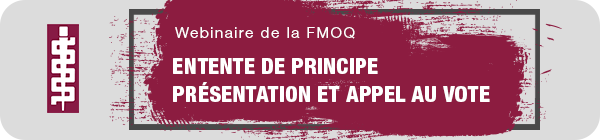 À la fin du premier webinaire, l’entente de principe sera immédiatement soumise au vote, conformément aux statuts et règlements de la FMOQ, afin que vous puissiez vous prononcer avant la période du congé des Fêtes.