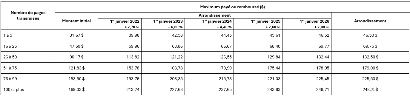Augmentation des montants maximaux remboursables pour les copies de dossiers, qui incluent les taxes à la consommation