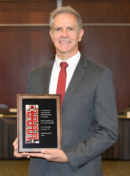 Le Dr Claude Guimond, ancien directeur de la Formation professionnelle à la FMOQ, a été nommé membre émérite de la Fédération pour son travail exceptionnel dans le secteur de la formation médicale continue en tant que médecin de famille. En 2007, il délaisse la pratique pour se concentrer à la formation professionnelle à la FMOQ. Pendant ses dix-huit ans de carrière à la FMOQ, Claude Guimond a orchestré la création du PADPC-FMOQ, introduit la webdiffusion des événements, lancé la plateforme Caducée, organisé d’innombrables congrès et accompli bien d’autres réalisations.